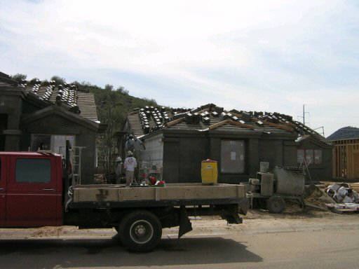 framed, Lot 64 is partially done, Lot 65 already has it's roof tiles! |